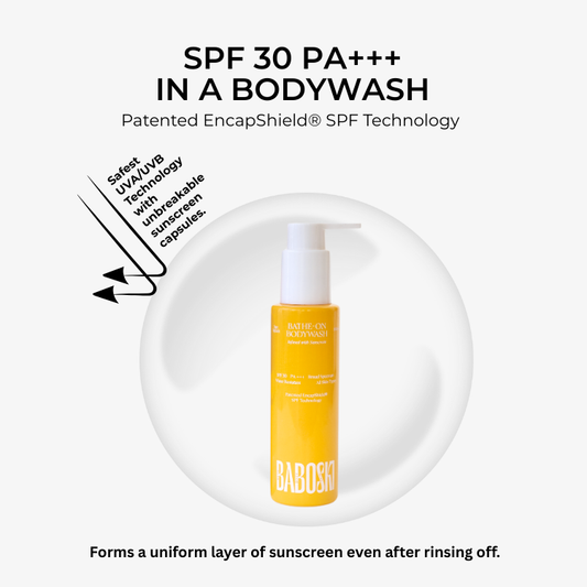 You heard it right! We are India’s first Bathe-On Sunscreen Bodywash brand, seamlessly integrating sun protection into daily routine. Our award-winning EncapShield® SPF technology and unique formulations combine the science of sunscreen with a cleansing bath.